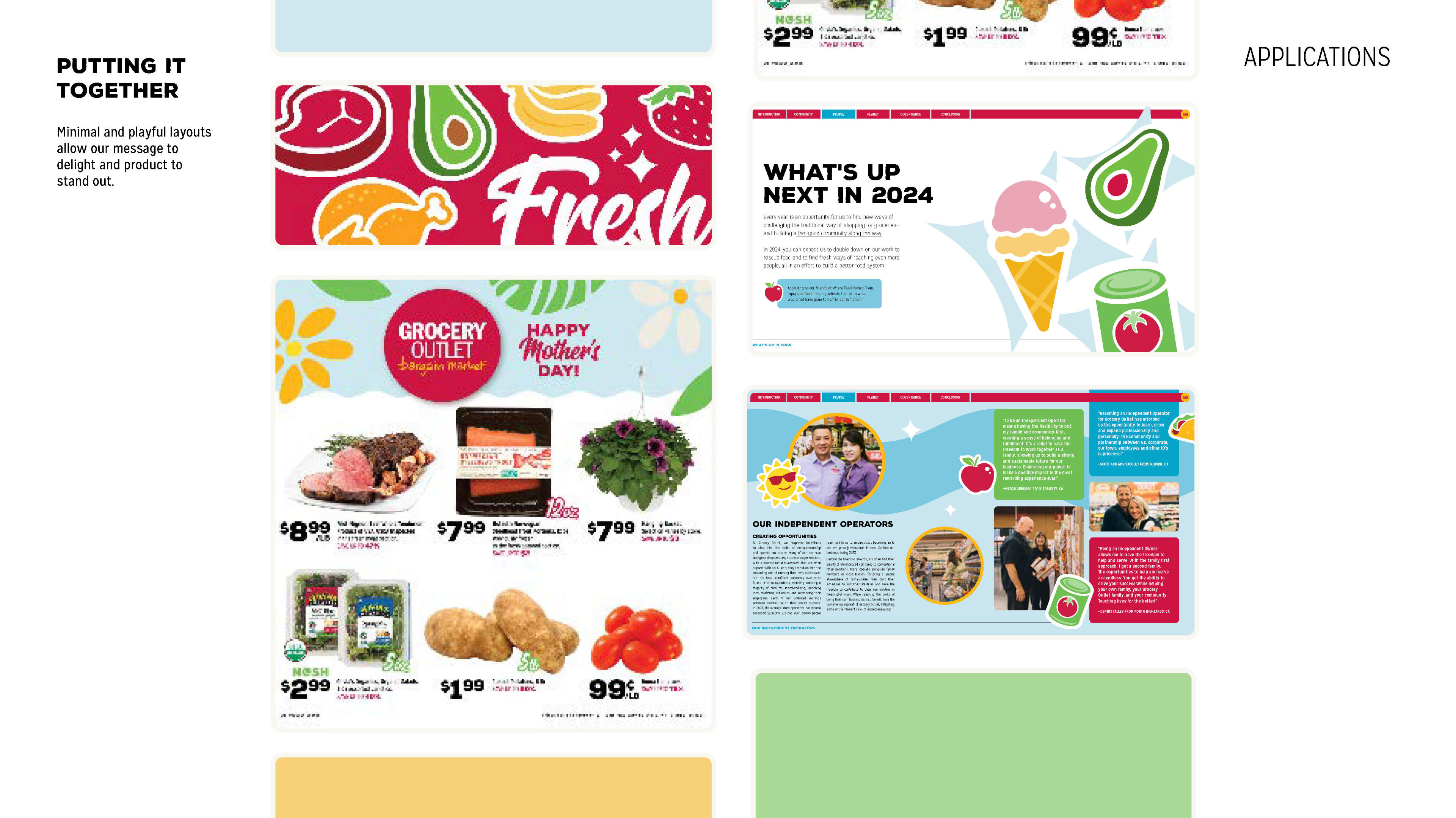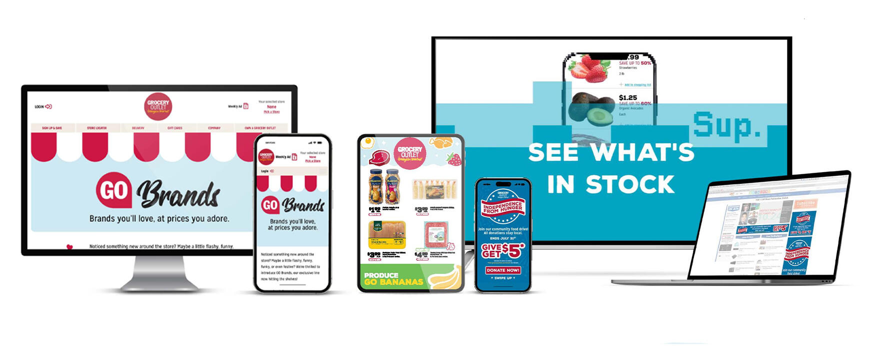I led a brand refresh and creative systems alignment for Grocery Outlet, a 530+ store retail chain. The goal was to realign the brand and modernize its creative systems to ensure consistency across all stores - all within a scope that changed quarterly.